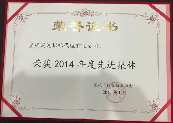 我公司榮獲重慶市招標投標協會2011-2013年度誠信創優先進集體及2014年度先進招標代理機構先進集體稱號