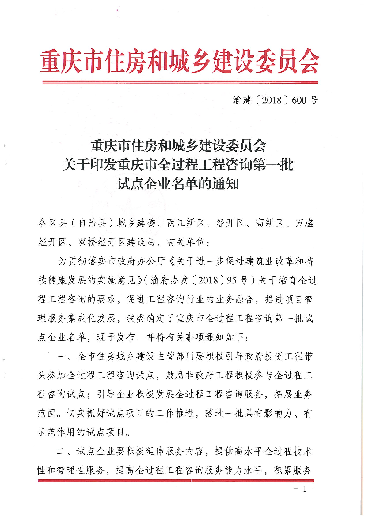 開拓進(jìn)取,銳勁勃發(fā)!——重慶宏達(dá)招標(biāo)代理有限公司成為重慶市全過程工程咨詢第一批試點(diǎn)企業(yè) 為積極響應(yīng)國家政策號(hào)召,促進(jìn)和提高行業(yè)服務(wù)質(zhì)量以及項(xiàng)目品質(zhì),有效規(guī)避風(fēng)險(xiǎn),加快建筑業(yè)改革和持續(xù)健康發(fā)展。根據(jù)《關(guān)于進(jìn)一步促進(jìn)建筑業(yè)改革和持續(xù)健康發(fā)展的實(shí)施意見》(渝府辦發(fā)[2018]95號(hào))文件精神,重慶市住房和城鄉(xiāng)建設(shè)委員會(huì)于2018年10月31日發(fā)布了《重慶市住房和城鄉(xiāng)建設(shè)委員會(huì)關(guān)于印發(fā)重慶市全過程工程咨詢第一批試點(diǎn)企業(yè)名單的通知》(渝建[2018]600號(hào)) 按《通知》公布,主管部門篩選通過了全市39家建筑業(yè)相關(guān)單位,重慶市全過程工程咨詢第一批試點(diǎn)企業(yè),重慶宏達(dá)招標(biāo)代理有限公司獲得提名,有幸成為重慶市全過程工程咨詢第一批試點(diǎn)企業(yè)一員。 作為一家數(shù)十年將招投標(biāo)交易方式用于工程建設(shè)項(xiàng)目的施工以及貨物、勘察設(shè)計(jì)、項(xiàng)目融資、咨詢、政府采購、企業(yè)采購服務(wù)的專業(yè)機(jī)構(gòu),重慶宏達(dá)招標(biāo)代理有限公司在致力于提高服務(wù)質(zhì)量,拓展業(yè)務(wù)范圍的同時(shí),積極響應(yīng)政府關(guān)于培育全過程工程咨詢的要求,配合相關(guān)行政主管部門進(jìn)行的各項(xiàng)措施調(diào)整改革,全力整合資源,不斷延伸服務(wù)領(lǐng)域,積極推進(jìn)全過程工程咨詢服務(wù)。 近幾年來,公司在招標(biāo)代理、工程造價(jià)、工程咨詢等業(yè)務(wù)范圍內(nèi)都取得了可喜的成績(jī)。重慶宏達(dá)招標(biāo)代理有限公司將緊緊抓住成為重慶市全過程工程咨詢第一批試點(diǎn)企業(yè)這一契機(jī),秉持著“穩(wěn)抓穩(wěn)打,提高質(zhì)量,把握機(jī)遇,開拓進(jìn)取!”的理念,不辱使命,在拓展之路上不斷探索,進(jìn)一步提高全過程咨詢服務(wù)和管理水平。 |
